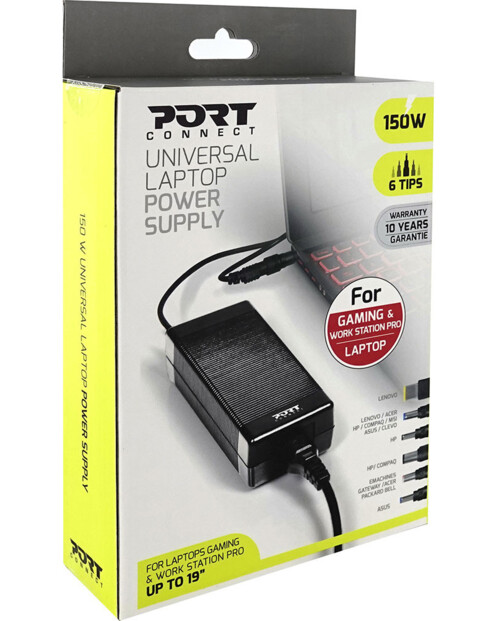 Ce chargeur secteur pour PC portable d'une puissance de 150 W est compatible avec la plupart des ordinateurs disponibles sur le marché.