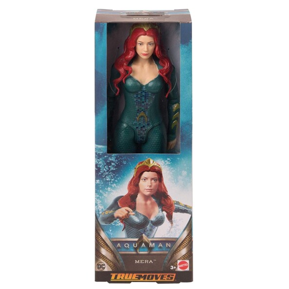 Mera, la femme d'Aquaman, est de retour pour affirmer sa place en tant que reine des mers. Cette figurine articulée de Mera mesure 30 cm. Elle fait partie de la collection de Mattel DC True-Moves. La figurine est articulée au niveau de la tête, des épaules, des coudes, des poignets, du bassin et des genoux. Exposez-la dans différentes postures pour mettre en scène des techniques de combat épiques.