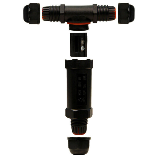 Ce connecteur électrique en T a un indice de protection IP68 ; il est résistant aux intempéries et aux UV tout en étant parfaitement ignifuge. Dévissez simplement les capuchons aux extrémités, raccordez vos câbles électriques grâce au domino présent dans le connecteur et revissez l'ensemble. Ce connecteur électrique est composé d'un plastique très résistant.