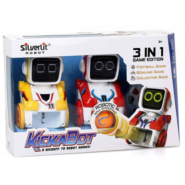 Ce coffret Silverlit contient 2 robots Kickabot que tu peux confronter à travers 3 modes de jeu : une partie de football, un tournoi de bowling ou une course de robots !