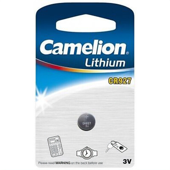 La pile bouton CR927 Camelion est une pile au lithium qui est utilisée dans certaines calculatrices, lampes de poche, appareils photos, télécommandes, systèmes d'alarme, etc.