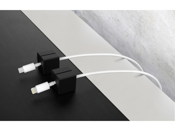 - Deux passe-câbles aimantés, compatibles avec la surface métallique intégrée au sous-main