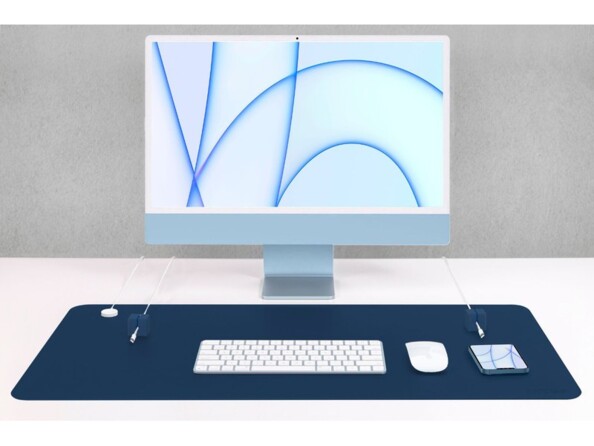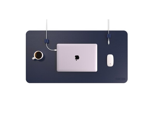 Un bureau ordonné et stylé avec le sous-main bleu Function101