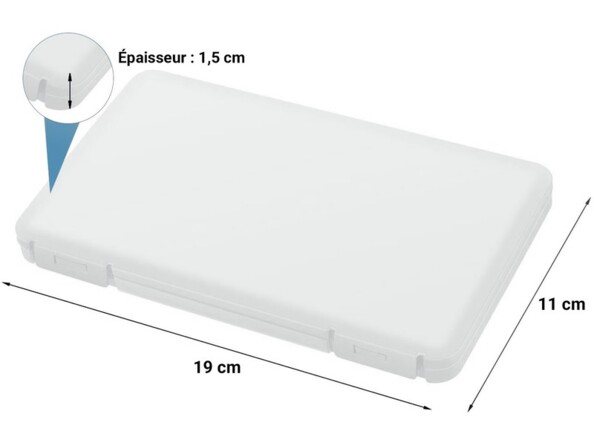 Polyvalente, cette boîte peut également servir à ranger d'autres petits objets du quotidien tels que des mouchoirs, des lingettes désinfectantes, des pansements ou des écouteurs. Son design sobre et discret s'adapte à tous les environnements, que ce soit au bureau, à l'école, en voyage ou lors de vos déplacements quotidiens.