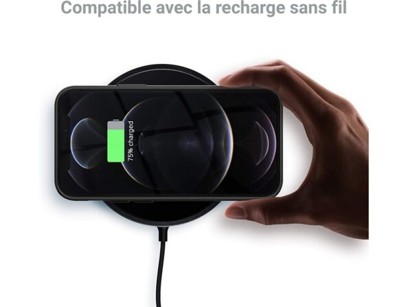- Compatible avec la charge rapide sans fil via les technologies MagSafe et Qi