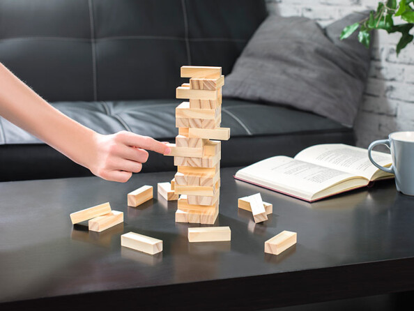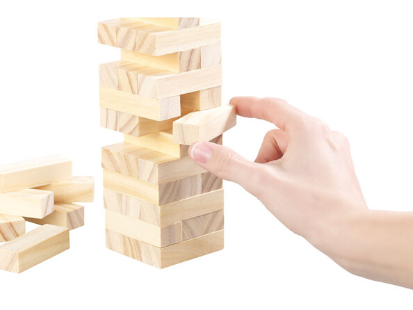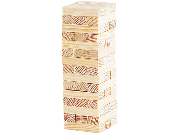 Facile à comprendre : Les autres joueurs tirent à tour de rôle un morceau de bois de la partie inférieure de la tour et le remettent sur le dessus. A chaque tour, la tour s'élève et devient de plus en plus instable, le premier à trembler risque de la faire chuter... ! La tension monte donc jusqu'au bout ! Idéal pour les enfants, développe la patience et la dextérité.