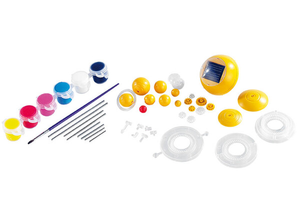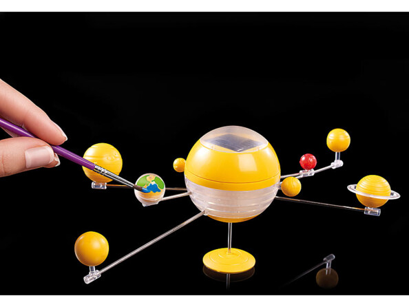 - Set complet avec panneau photovoltaïque, moteur, reproduction modélisée du système solaire, 6 pots de peinture acrylique et pinceau