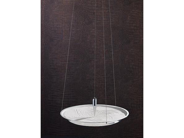 La particularité : en faisant osciller ou tourner simultanément le bol de sable argenté et le pendule, des motifs particulièrement artistiques sont tracés dans le sable.