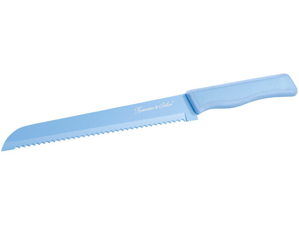 Le grand couteau cranté vous permet de trancher le pain facilement, tandis que la courbe des poignées en plastique vous offre une prise en main optimale pour chaque couteau.