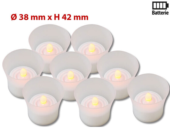 - 8 bougies chauffe-plat à LED intégrées dans des photophores