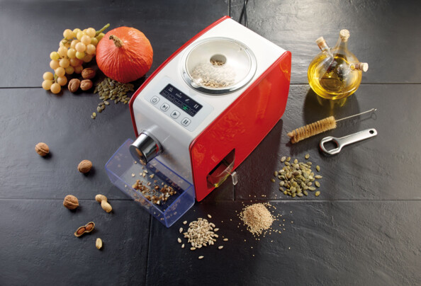 Il est équipé d'un écran de contrôle, sur lequel vous choisissez le programme en fonction du type d'ingrédient utilisé (noix, graines de tournesol, colza ou sésame). La presse Rosenstein & Söhne se charge alors d'ajuster son fonctionnement selon l'ingrédient à presser.