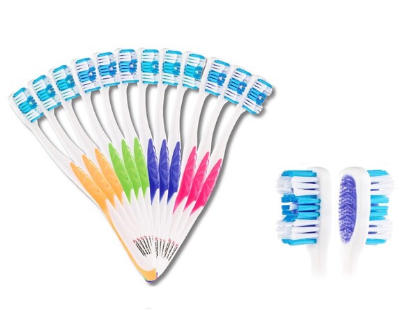 Veillez à la bonne hygiène de vos dents au quotidien. Réunies en un pack familial pratique, les 12 brosses à dents bénéficient d'une structure souple et arrondie pour s'adapter au contour de vos dents et ainsi ménager vos gencives. Même les espaces difficiles d'accès peuvent être brossés.
