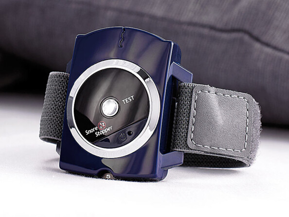 Il suffit de porter le bracelet comme une simple montre. Dès que le capteur acoustique détecte un ronflement de plus de 65 dB, il envoie une légère impulsion électrique pour que le ronfleur change de position et interrompe le ronflement sans se réveiller.