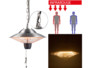 Il suffit de suspendre l'appareil au plafond et de le brancher à une prise électrique. Le système de chauffage infrarouge diffuse immédiatement une chaleur agréable, idéal lorsque vous ne devez sortir que quelques minutes.