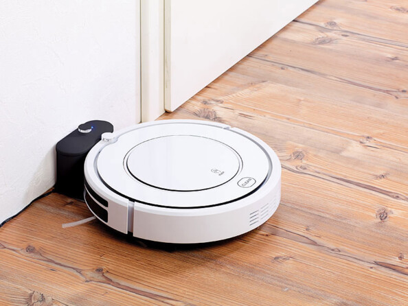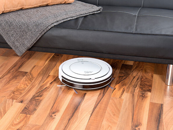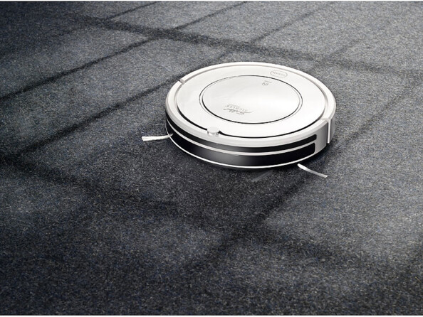Ce petit robot infatigable aspire et brosse vos sols. Il rejoint ensuite automatiquement sa station de chargement. Une fois sa batterie rechargée, il poursuit le programme de nettoyage hebdomadaire.