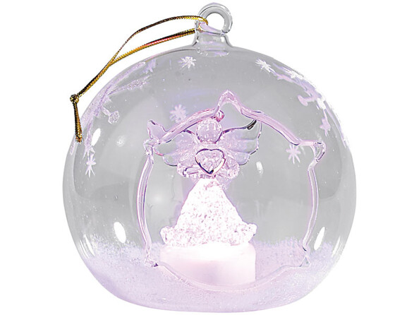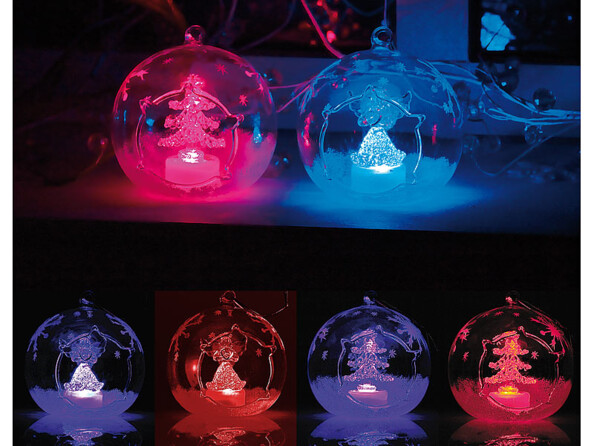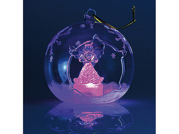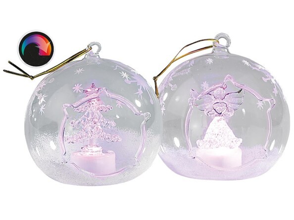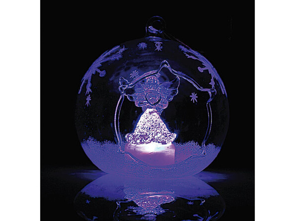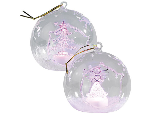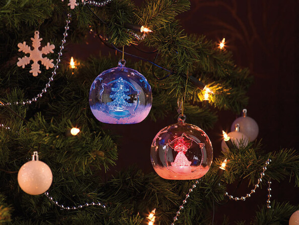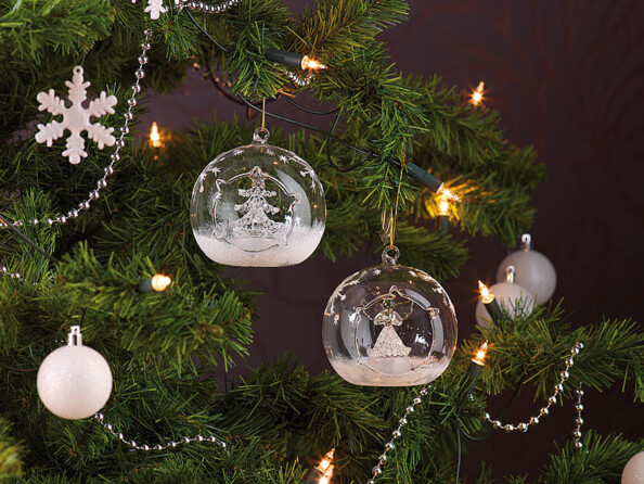 Délicatement décorés, ces ornements renferment un sapin et un ange, mis en valeur par une symphonie de couleurs. Des flocons et de la neige viennent parfaire ce ravissement pour les yeux.