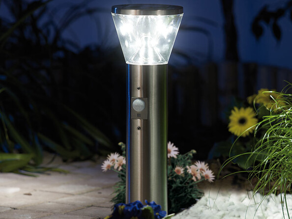 Ces lampes solaires à LED produisent leur propre énergie et vous permettent de vous promener la nuit en toute sécurité : dès qu'il détecte un mouvement dans un rayon de 5 m, le capteur PIR allume automatiquement 4 LED supplémentaires, pour que vous puissiez mieux voir où vous allez et ce qui se passe autour de vous.