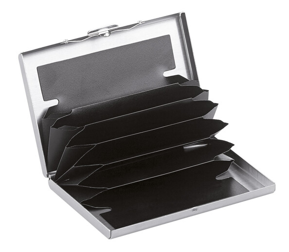 L'étui à 6 compartiments protège la puce RFID de vos cartes et empêche la lecture de vos données. Ainsi, votre carte bancaire, votre carte Vitale ou votre permis de conduire sont sécurisés ! Avec son design élégant en acier inoxydable brossé et ses dimensions compactes, l'étui se glisse dans tous les sacs à mains et poches sans jurer avec votre style.