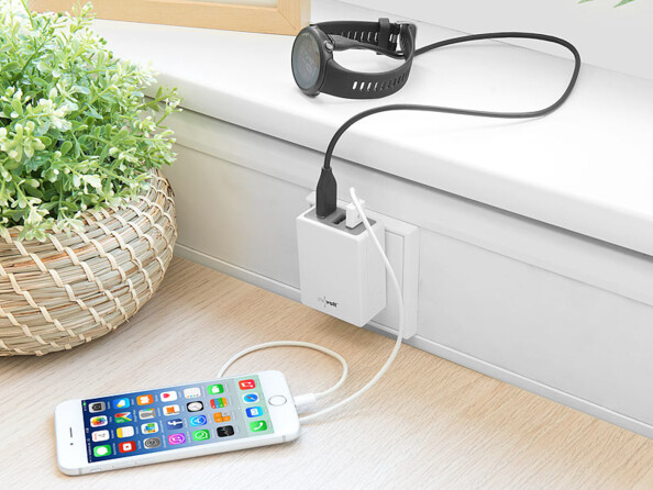 À peine visible : le bloc d'alimentation particulièrement plat est à peine repérable lorsqu'il est branché dans la prise de courant. Et comme les ports de chargement USB sont orientés vers le bas, la poussière et la saleté ne pénètrent pratiquement pas.