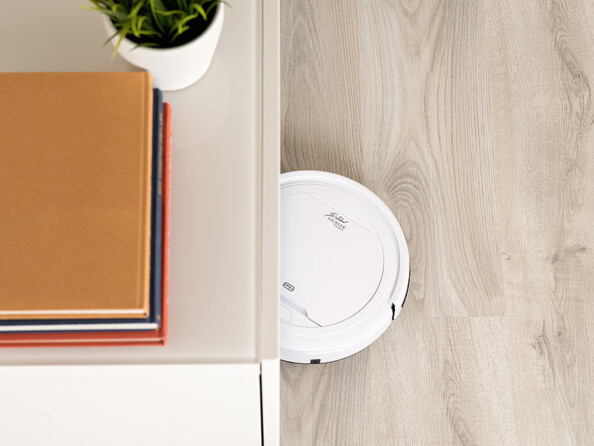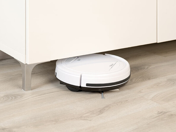 Grâce à son design plat, le robot se glisse sous les lits, canapés ou commodes, tandis que ses longues brosses rotatives permettent d'atteindre la saleté dans les moindres recoins.