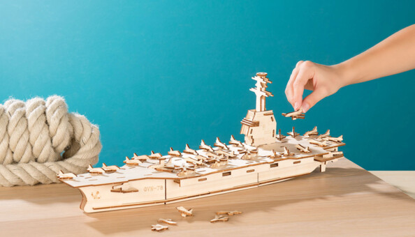 Il suffit de presser les différentes parties du navire hors de la plaque en bois et de les assembler. Les kits de construction en bois 3D sont parfaits pour initier les enfants au modélisme. Afin de créer de véritables pièces uniques, chaque pièce peut être peinte ou laissée brute.