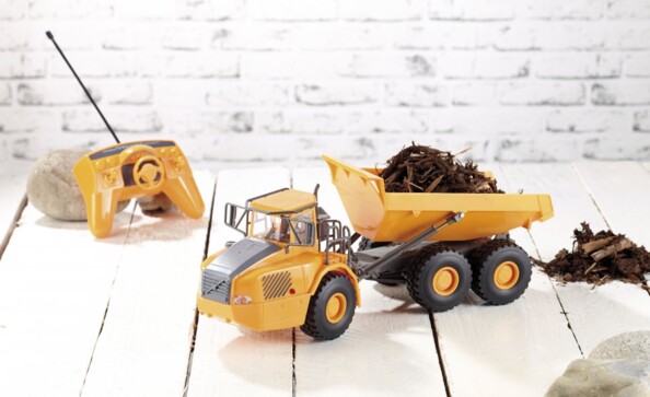Avancer ou reculer, tourner à droite ou à gauche, faire basculer ou remonter la benne : toutes les fonctions se commandent directement sur la télécommande 3 canaux.