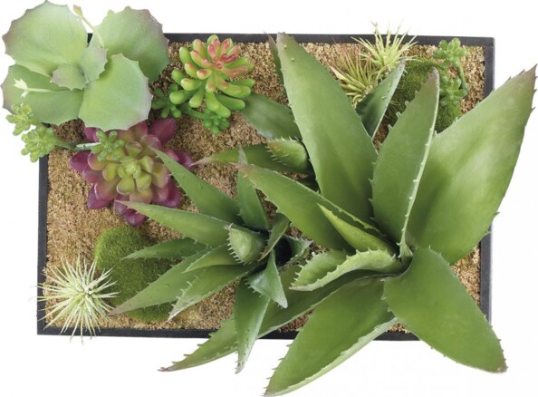 Cette composition de plantes succulentes (grasses) artificielles est disponible en différents formats. Associez les cadres pour créer votre propre tableau totalement unique.