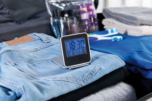 - Réveil de voyage livré avec sa pile bouton