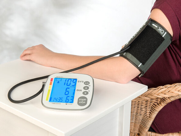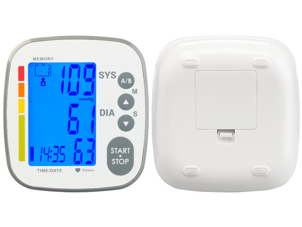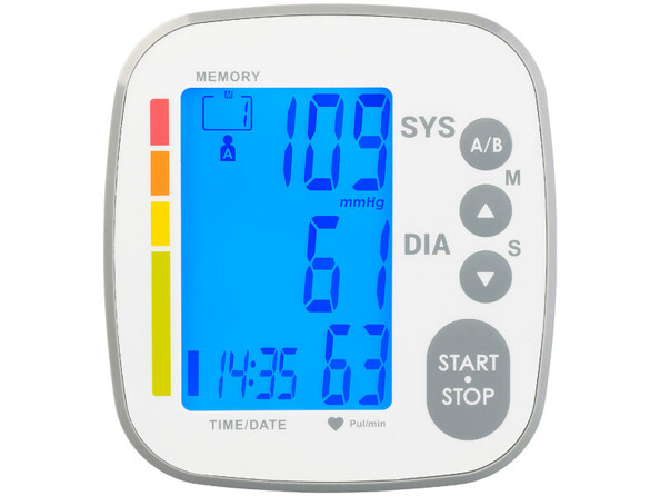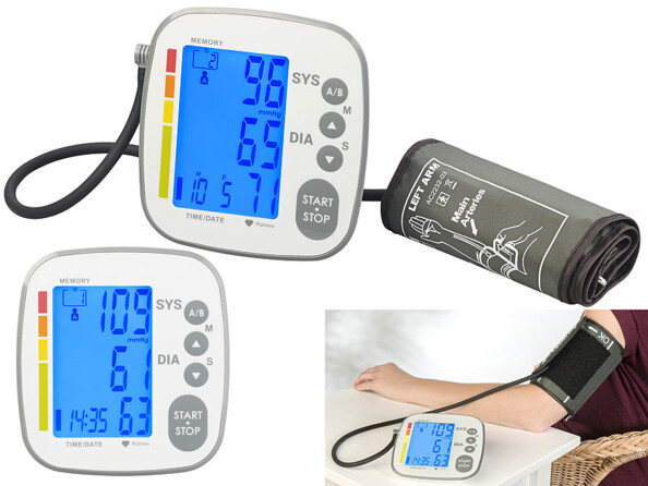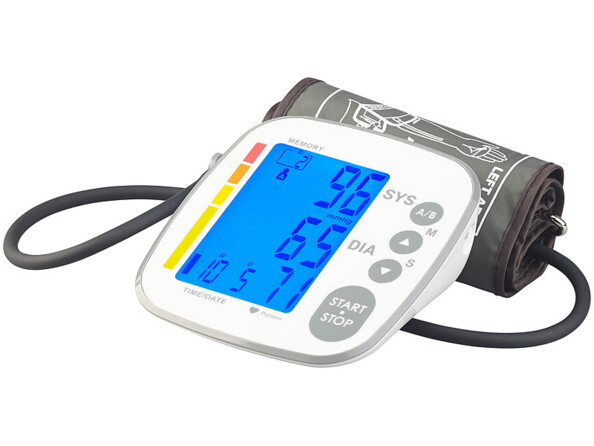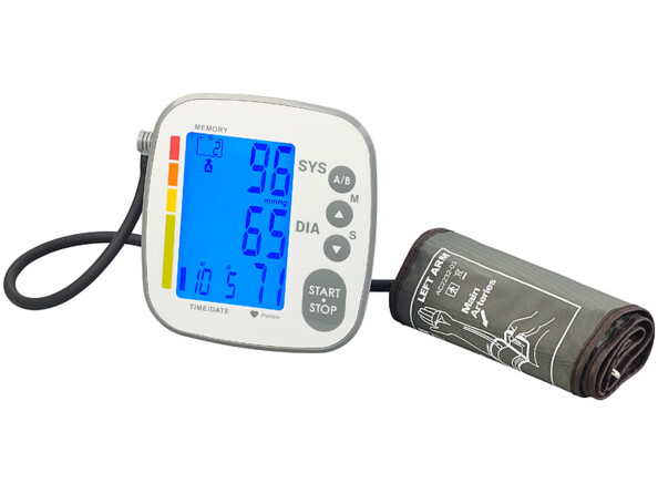 - Mesure la pression artérielle par brassard, automatiquement sur simple pression d'un bouton