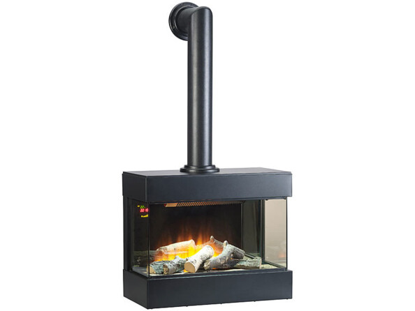 - Cheminée électrique "Tanami", tuyau de poêle, anneaux de montage, éléments décoratifs, télécommande, pile bouton, support mural, matériel de montage, mode d'emploi en français