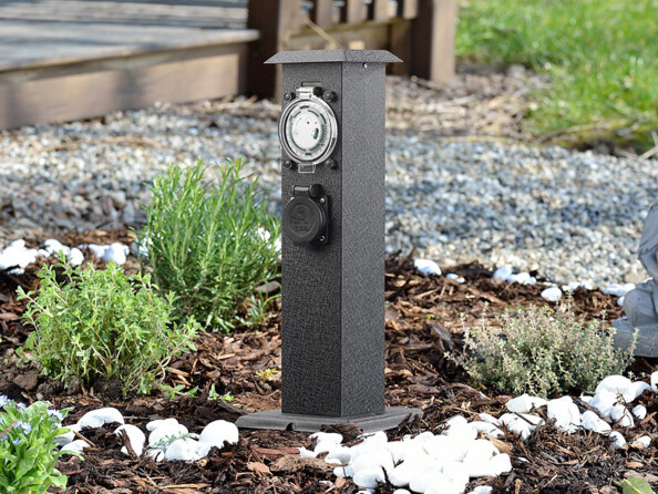 Avec cette double colonne multiprise d’extérieur en acier inoxydable avec minuteur, alimentez facilement les lumières, les tondeuses à gazon électriques, les grils électriques et bien d'autres équipements de jardin.
