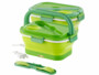 Branchez la lunch box isotherme sur une prise électrique, et voici votre repas réchauffé de façon homogène ! Aucun risque de mélanger les sauces : ces dernières peuvent être conservées à l'abri dans un compartiment spécial sauces, avec les couverts multifonctions. Avec son couvercle à 4 clips de fermeture et anneau d'étanchéité, la lunch box reste hermétiquement close, vous épargnant les mauvaises surprises dans le sac. Transportez-la facilement grâce aux poignées rabattables, et rangez-la tout aussi simplement en la pliant !