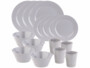 - 16 pièces : 4 grandes assiettes, 4 petites assiettes, 4 bols, 4 gobelets