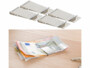 La solution : fixez vos billets dans cette pince à billets. Elle maintient une liasse épaisse ou quelques billets tout aussi solidement. Son atout : avec deux pinces en une, vous pouvez fixer des billets mais aussi des cartes de paiement de l'autre côté.
