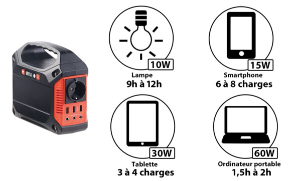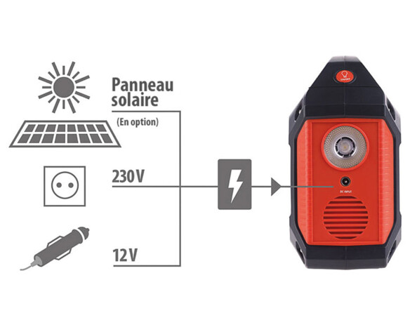 Emportez une source d'énergie fiable partout avec vous : la batterie d'appoint constitue une réserve de puissance utile en déplacement, au camping et dans toute autre zone dépourvue de réseau électrique !  Rechargez ensuite votre batterie partout, que ce soit par adaptateur secteur, allume-cigare ou même par panneau solaire. Vous n'êtes ainsi jamais en panne d'énergie !  |