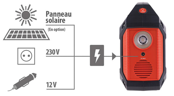- Délivre un courant 12V ou 230V et permet d'alimenter les appareils USB