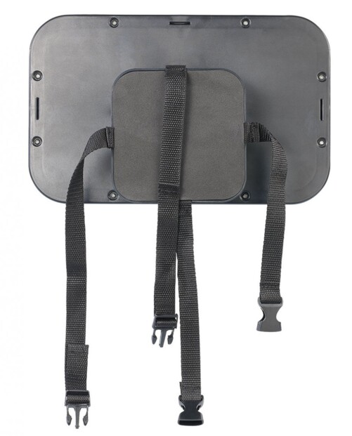 - Fixation simple sur l'appuie-tête de la banquette arrière (attaches avec fermeture à clic)