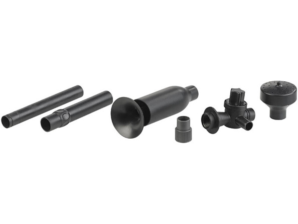 - Pompe de bassin, 2 buses de diffusion, tube de rallonge en 2 parties, 2 adaptateurs de buse, mode d'emploi en français inclus
