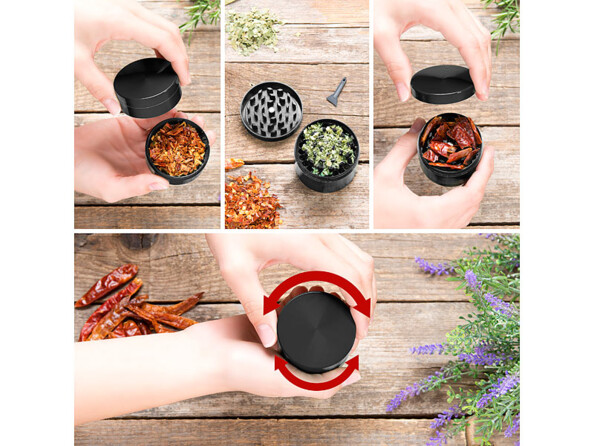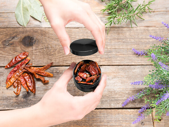 Rapide et facile à prendre en main, ce broyeur s‘utilise en tournant le couvercle et la boîte dans des directions opposées. Les lames rotatives aiguisées assurent un broyage très fin. Le tamis intégré vous permet de séparer les morceaux grossiers des plus fins.