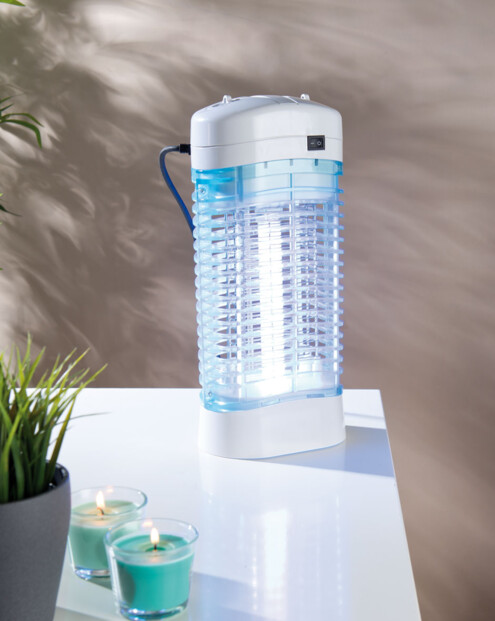 Dès que les moustiques entrent en contact avec la grille à haute tension, ils sont tués par choc électrique. Pas d'inquiétude pour les enfants et animaux domestiques : une grille de protection tout autour de l'appareil empêche tout contact avec la grille à haute tension. L'atout de cet appareil : la lumière est émise à 360° pour attirer les insectes de tous les côtés.