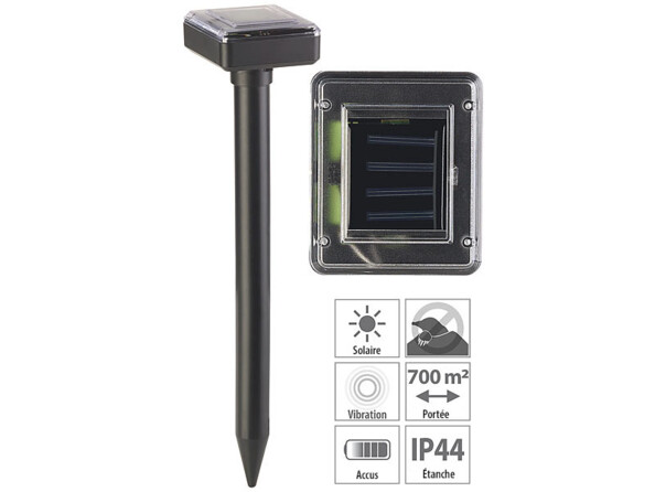 Lot de 2 dispositifs anti-taupe solaires 400 HzSimple et économique : le chasse-taupe émet dans ondes sonores de 400 Hz dans le sol jusqu'à 30m de distance, ce qui suffit à faire fuir les taupes sans les tuer ou détruire l'écosystème !