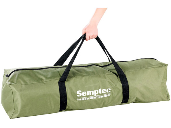 Installez la tente en un rien de temps au-dessus du lit. Vous pouvez même utiliser la tente sans emporter le lit de camp, pour des bagages plus légers et un confort presque équivalent. La couleur verte de la toile se fond dans la nature et le polyester robuste empêche l'eau d'entrer. Vous pouvez dormir tranquillement, bercé par le son de la pluie.