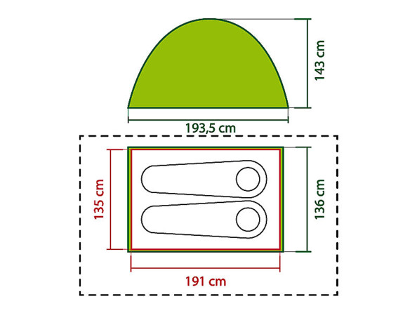 - Dimensions de la tente assemblée (L x l x h) : 193 x 137 x 160 cm
