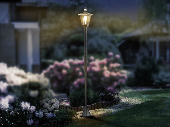 Un éclairage optimal et un accroche-regard élégant : avec une hauteur de 160 cm, votre lampadaire de jardin est idéale pour les entrées de cour, les zones de stationnement et les chemins de jardin. La lumière est accueillante et offre plus de sécurité.