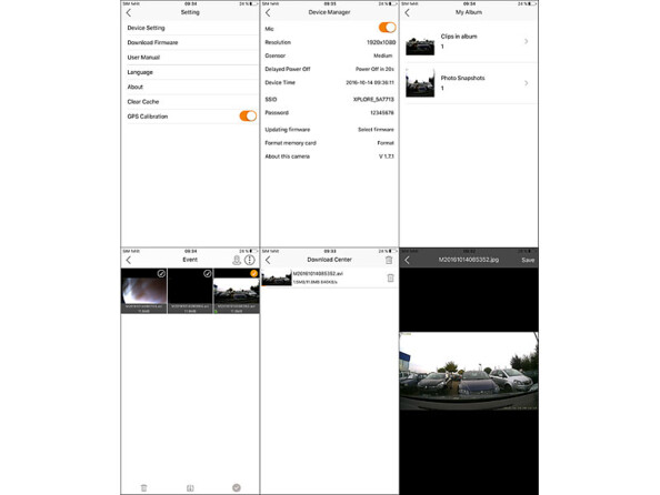 - Application gratuite "Xplorecam" pour iOS et Android (disponible sur App Store et Google Play) : pour les réglages, la gestion des enregistrements avec option de téléchargement sur appareil mobile et visualisation du trajet sur carte