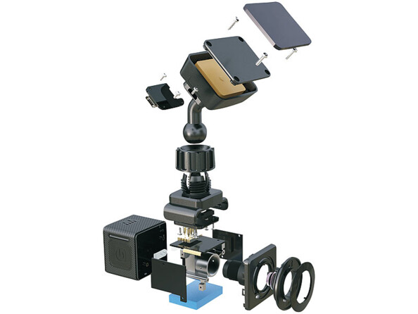 - Support adhésif compact avec articulation 3D à rotule pour un montage discret sur le pare-brise