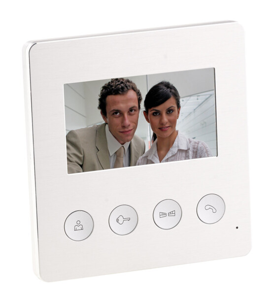 - Utilisation facile à 5 touches (activation/désactivation caméra, ouverture porte ou portail, communication vocale, sonnerie) et 3 boutons rotatifs (luminosité, couleur, volume)
