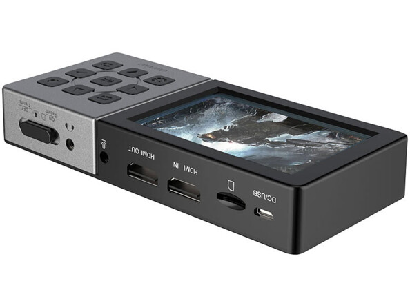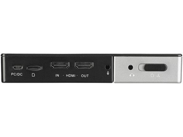 - Connectique : Micro-USB (prise secteur et port d'ordinateur), HDMI-in, HDMI-out, emplacement pour carte MicroSD, 2 prises jack 3,5 mm pour casque et microphone