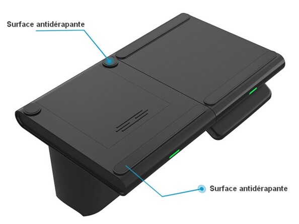 - Station de chargement par induction pour smartphone, Apple Watch et AirPods ; utilisable en 2 parties grâce aux contacts magnétiques
