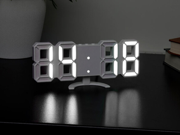 Décorez votre mur, votre commode ou votre bureau d'une horloge LED lumineuse compacte.